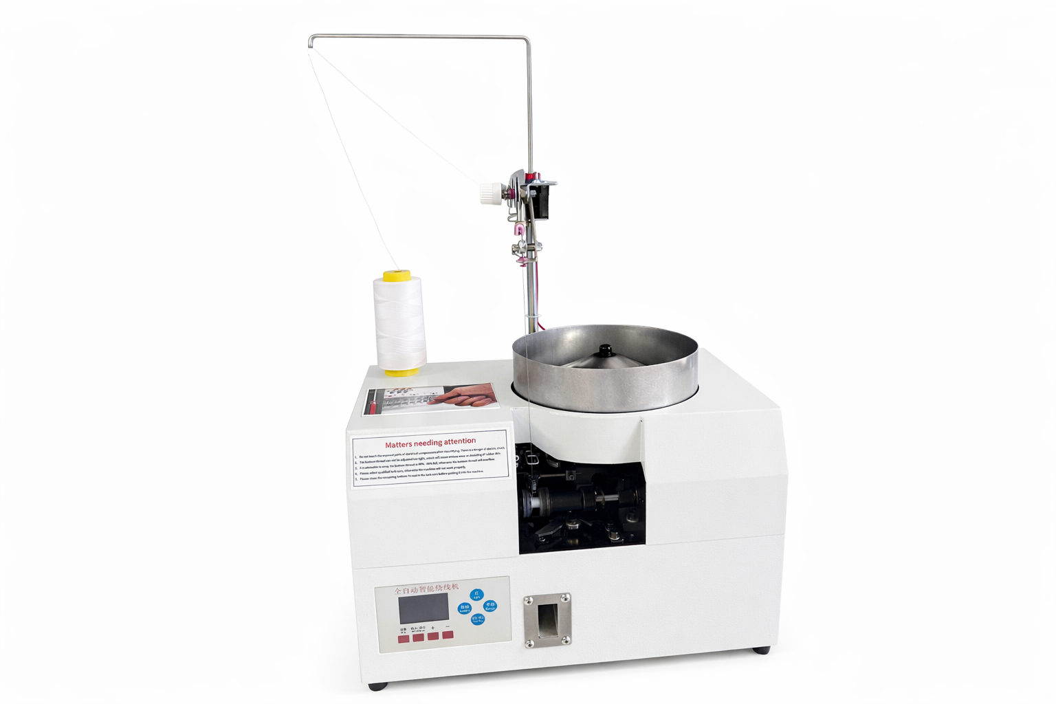 Il numero di fili delle bobine è regolabile. La macchina effettua un controllo automatico quando l’alimentazione delle bobine viene interrotta.