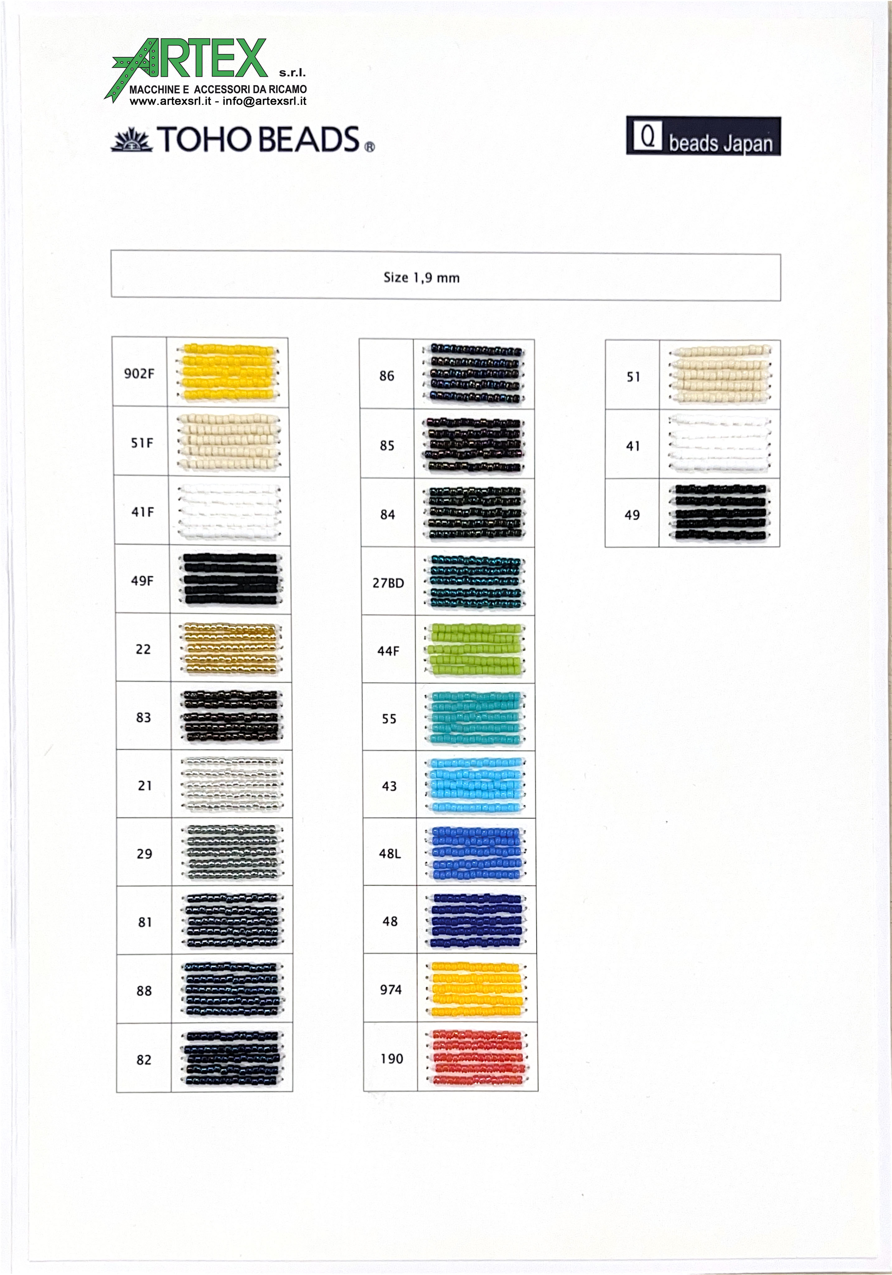 Grazie alla loro lucentezza e uniformità trasformano qualsiasi progetto di ricamo in un’opera d’arte caratterizzata da una precisione senza pari. Le perline di vetro Toho, con un diametro di soli 1,9 mm, costituiscono un’innovazione senza precedenti nel panorama del ricamo industriale. Uniche per le loro dimensioni estremamente ridotte, queste perline consentono un livello di precisione e definizione senza eguali anche nei dettagli più delicati dei progetti di ricamo.